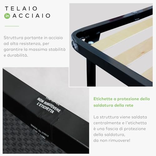 EVERGREENWEB Rete Letto Matrimoniale 160x200 a Doghe in Legno + 1 Dogha Ricambio GRATIS con 4 Piedi Smontabili ORTOPEDICA Struttura portante in Ferro Rinforzata, Base da Incasso per Letti e Materassi