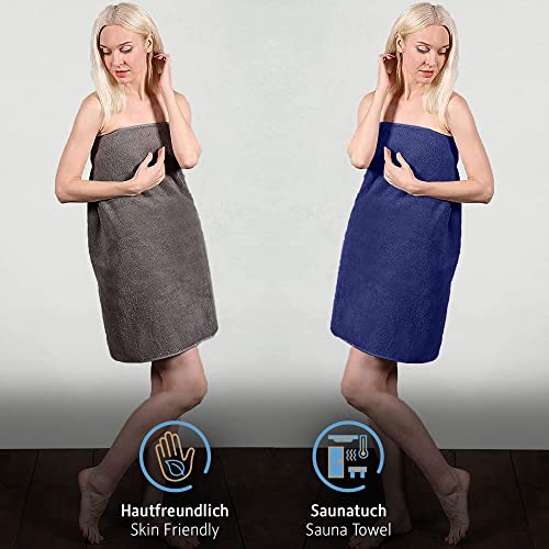 Komfortec Asciugamani 2 per Sauna 70x200 cm in 100% Cotone,470 g/m², Asciugamano Doccia Grande, Morbido, Asciugatura Rapida, Grigio antracite/Blu scuro