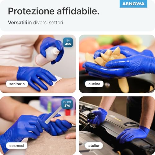 100x ARNOMED® Guanti nitrile S Blu Scuro, Guanti monouso senza polvere e lattice, Guanti plastica usa e getta dermanytril, Per cucina, pulizia casa, alimenti e tattoo XS, S, M, L, XL