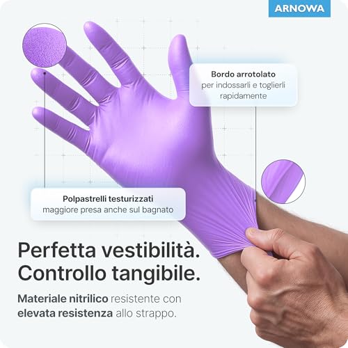 ARNOMED 100x Guanti nitrile L Viola, Guanti monouso senza polvere e lattice, Guanti plastica usa e getta dermanytril, Per cucina, pulizia casa, alimenti e tattoo XS, S, M, L, XL