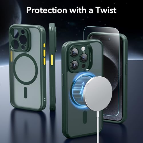 ESR Set di Cover per iPhone 15 Pro Max (5 in 1),Custodia opaca con protezione dello schermo e delle lenti della fotocamera,Compatibile con MagSafe,Protezione di livello militare,Serie Classic,verde