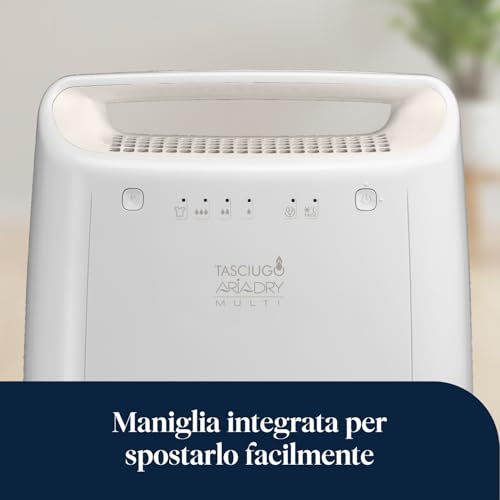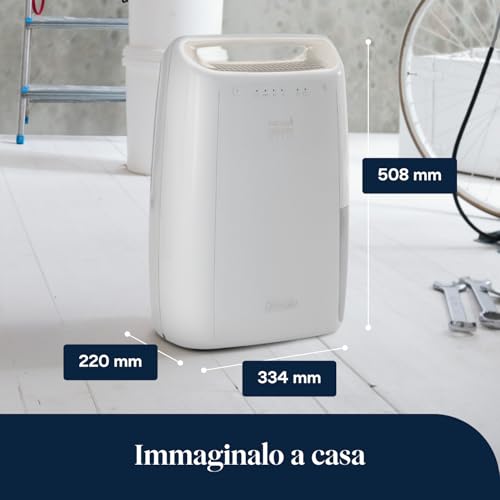 De'Longhi Tasciugo AriaDry - Deumidificatore Casa Portatile con Sistema di Filtrazione a 3 Azioni, Assorbi Umidità 10L/Giorno, Asciugabiancheria, Antimuffa, Bassa Rumorosità, Bianco (DEX210SF)