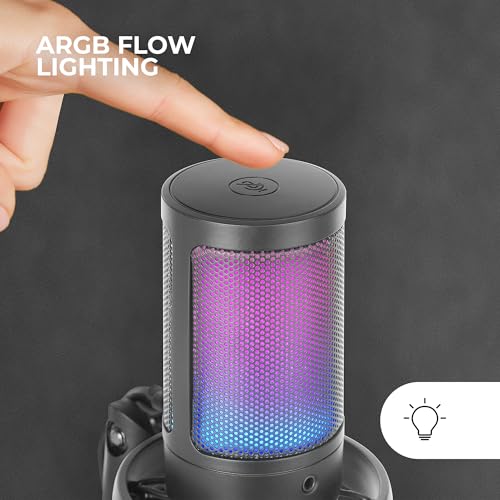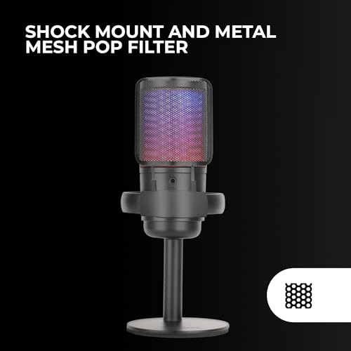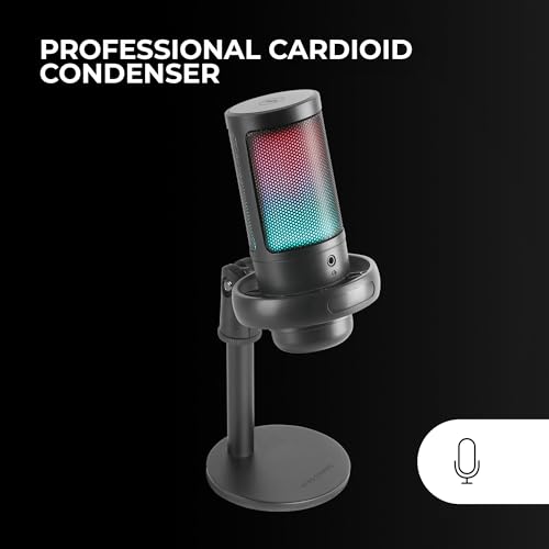 Mars Gaming MMIC-SE, Microfono da Studio Professionale ARGB, ADC Ultra Alta Definizione 196kHz 24-bit, Supporto Antiurto + Filtro Anti-Pop in Rete Metallica, Controllo Volume e Mute, Nero