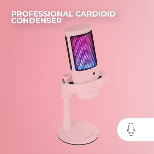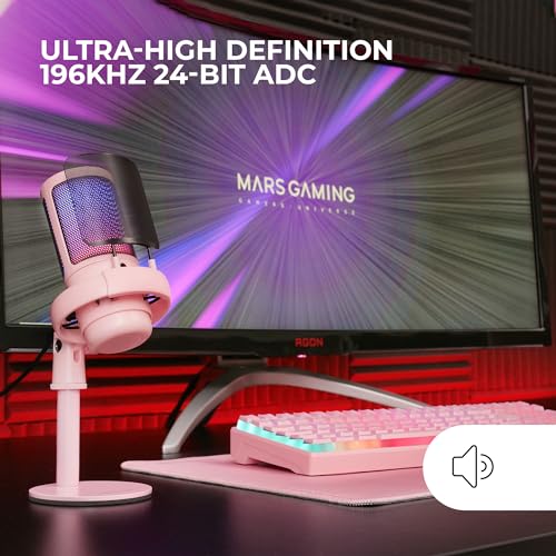 Mars Gaming MMIC-SE, Microfono da Studio Professionale ARGB, ADC Ultra Alta Definizione 196kHz 24-bit, Supporto Antiurto + Filtro Anti-Pop in Rete Metallica, Controllo Volume e Mute, Rosa