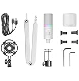 Mars Gaming Microfono Mmic-Xt RGB Con Reggiseno Di Montaggio (Bianco), Microfono
