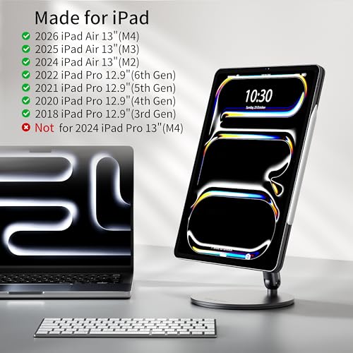 LULULOOK Supporto Magnatico iPad Pro 12.9",in 100% Alluminio,Sospensione,Pieghevole,Utilizzare Orizzontale o Verticale,Supporto iPad,Compatibila con iPad Air 13" 2025 M3 M2, iPad Pro 12.9" 4ª/5ª/6ª