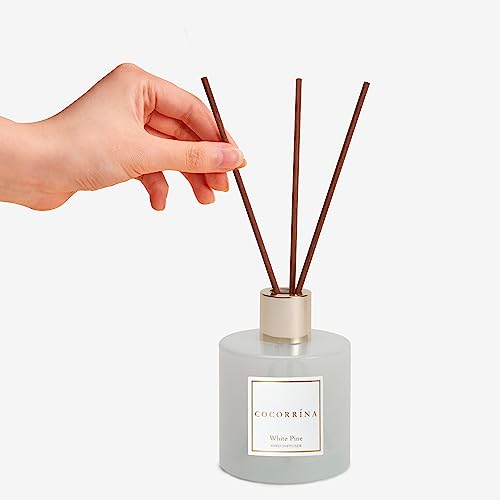 Cocorrína Reed Diffuser Set WHITE PINE - 200ml Diffusore profumato di Pino Bianco con bastoncini Diffusore di olio essenziale di fragranza per la casa per la decorazione della mensola del bagno