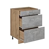Vicco Mobiletto base per cucina R-Line, Calcestruzzo, 60 cm con cassetti, PL Rovere, per la libera combinazione all'interno di sistemi cucina modulari