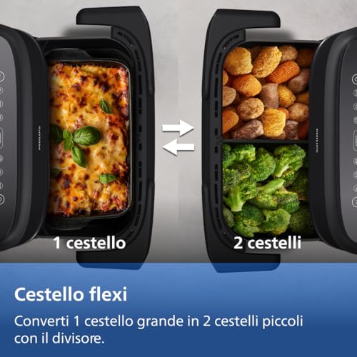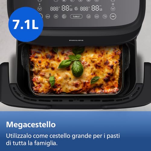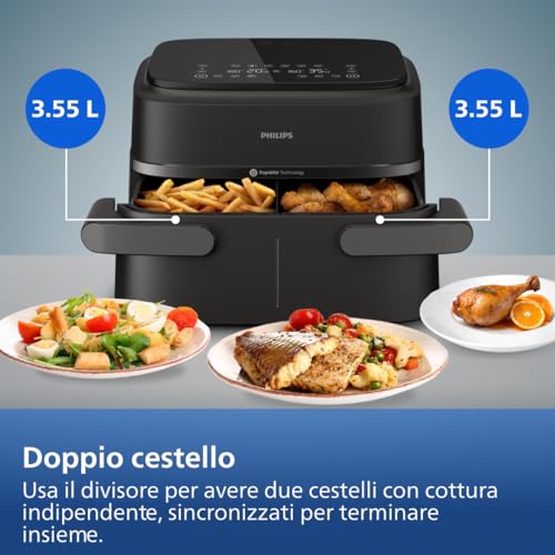 Philips Airfryer Serie 1000, Friggitrice ad aria con singolo/doppio cestello flexi da 7.1L e separatore, doppia resistenza e termostasti separati, RapidAir, 10 modalità, compatto, HomeID (NA154/00)