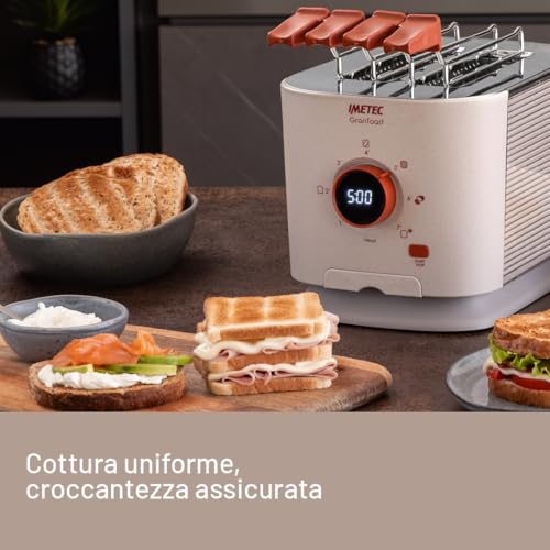 Imetec Grantoast - Tostapane 2 Fette XL con Pinze Apribili per Toast Farciti - 7 Livelli Doratura, Facile Pulizia, Display LED, Griglia Scalda Brioche, Pizzette e Focacce, Timer Digitale, Acciaio Inox