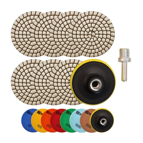 HIGHDRIL Pastiglie per lucidatura diamantata a secco, 9 pezzi, 7 pezzi, set di lucidatura in marmo, #50/100/200/400/800/1500/3000+M14, piastre di supporto filettate+adattatore per granito marmo pietra