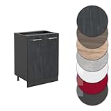 Vicco Mobiletto base cucina R-Line, Calcestruzzo nero, 60 cm senza piano di lavoro, per la libera combinazione all'interno di sistemi cucina modulari