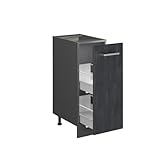 Vicco Armadio cucina dispensa alto R-Line, Calcestruzzo nero, 30 cm senza piano di lavoro, per la libera combinazione all'interno di sistemi cucina modulari