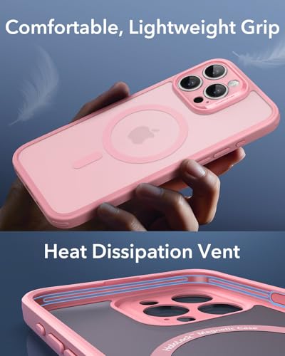ESR Cover per iPhone 16 Pro (4 in 1 Set),Custodia traslucida opaca con protezione dello schermo per iPhone 16, Compatibile con MagSafe, Protezione di livello militare, Serie Classic, Rosa Opaco
