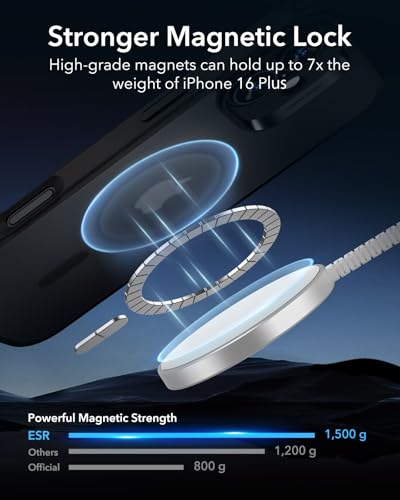 ESR Cover Magnetica per iPhone 16 Plus, Compatibile con MagSafe, Protezione antiurto di livello militare, Custodia magnetica, Serie Classic (HaloLock), Nero Opaco