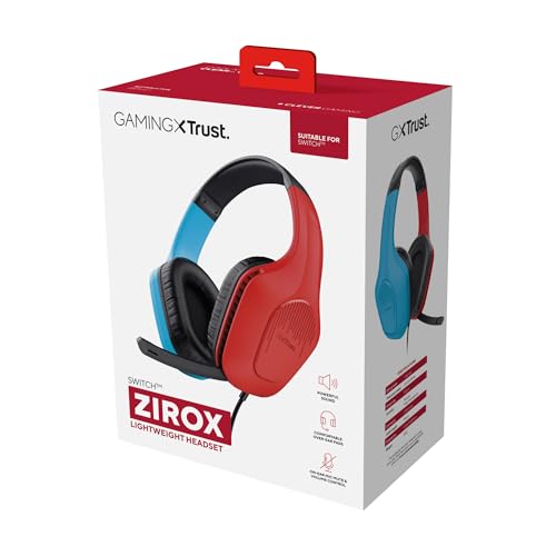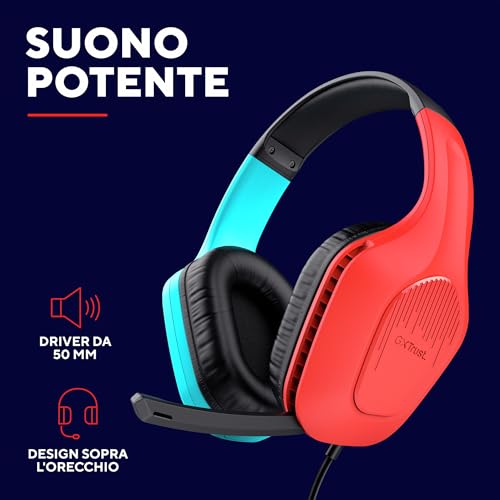 GXTrust 416S Zirox Cuffie Gaming Leggere per Nintendo Switch con Driver da 50 mm, Jack Audio 3.5 mm, Cavo 1,2 m, Archetto Regolabile, Cuffie con Microfono Over-Ear, Cablate, Blu/Rosso