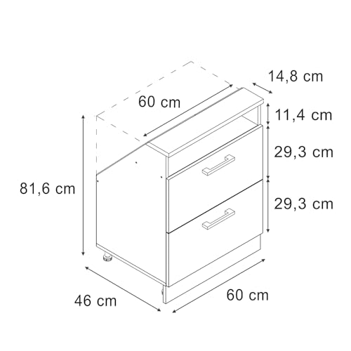 - Mobile base con cassetti 60 cm senza maniglie