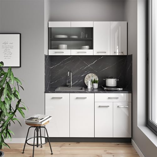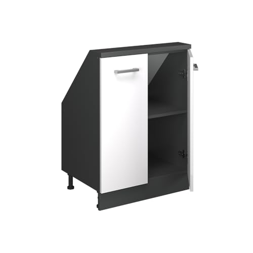 Vicco Mobile cucina sottotetto R-Line, Bianco lucido/antracite, 60 cm con 2 porte