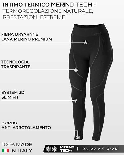 Risalti Tuta Termica Donna Invernale Lana Merino Tech - Completo Maglia Termica Donna e Calzamaglia in Merino Premium e Dryarn, Intimo Seamless, Traspirante e Termoregolante Estremo - Made in Italy