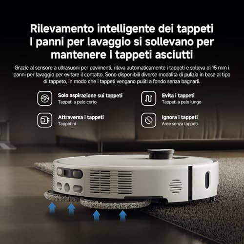 | caratteristiche speciali | 360-Degree Swivel, Navigazione LiDAR, No-Go Zone, Raccolta automatica della polvere, Scheduling |
