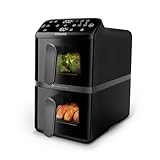 Philips Airfryer Serie 4000, Friggitrice ad Aria Doppio cestello Verticale da 10L, Tecnologia RapidAir, Funzione Sync, Rivestimento in ceramica no PFAS, Finestre, 45% più piccola (NA460/00)
