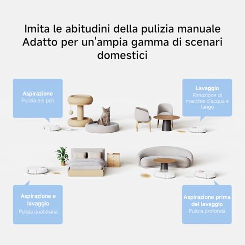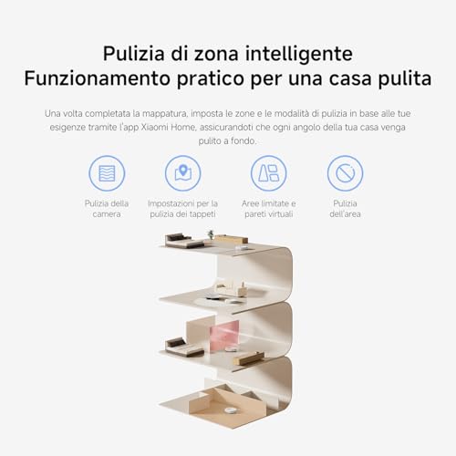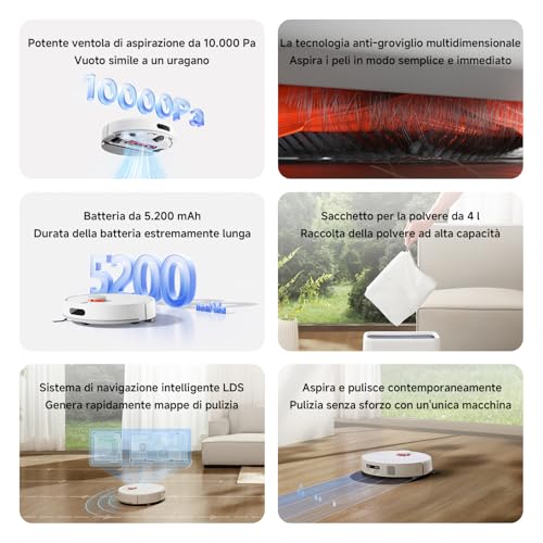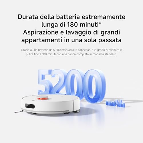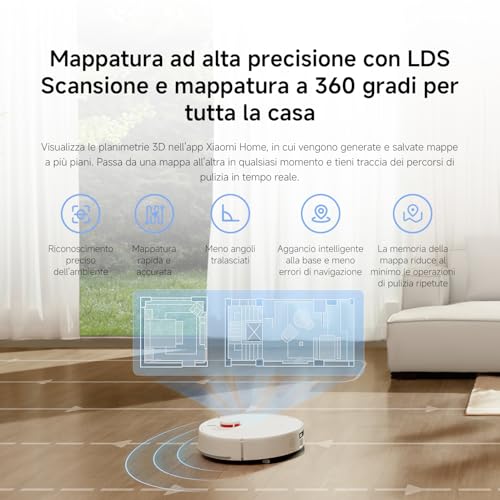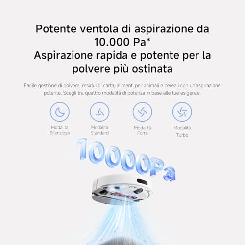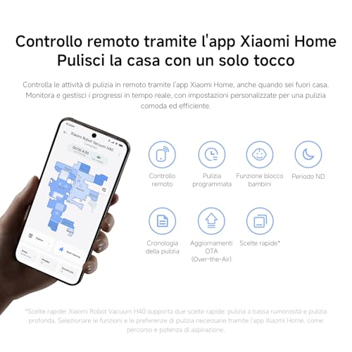 XIAOMI Robot Vacuum H40 EU, Aspirapolvere e Lavapavimenti all-in-one, Potenza di Aspirazione 10.000Pa, Mappatura ad alta precisione con LDS, Ideale per Tappeti a Pelo Corto e Pavimenti Duri