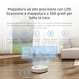 | caratteristiche speciali | 360-Degree Swivel, Navigazione LiDAR, No-Go Zone, Raccolta automatica della polvere, Scheduling |