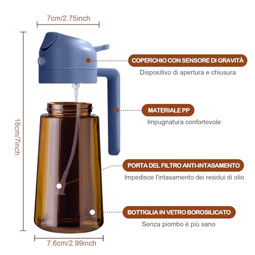 YARRAMATE Spruzzatore per olio da 470 ml, marrone scuro per cucinare con adesivi, bottiglia dispenser di olio d'oliva 2 in 1 di qualità alimentare, per gadget da cucina, friggitrice ad aria, insalata