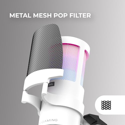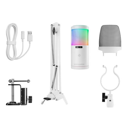 Mars Gaming MMIC-SC, Microfono Studio Professionale, Design ARGB Alta Gamma, Alta Definizione 192Khz 24-bit, Braccio Meccanico Omnidirezionale, Ghiera Controllo, Filtro Pop Rete Metallica, Bianco