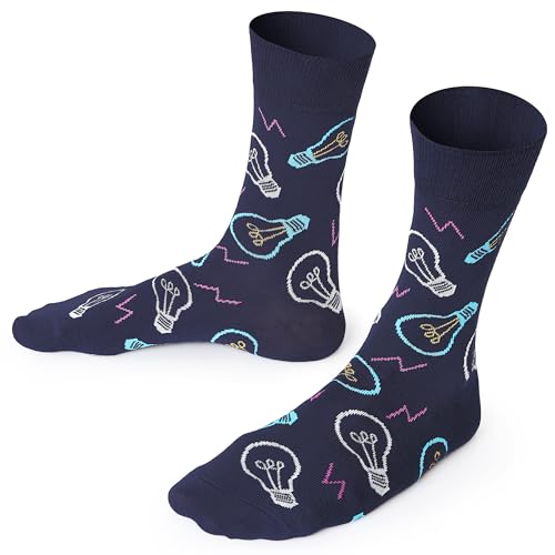 TODO Colours Calzini divertenti con motivo – Multicolori, Colorati, Pazzi per la gioia di vivere, Lampadine - Navy, 43-46