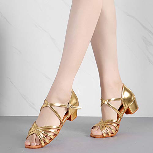 LaoZan Donna Tacco Scarpe da Ballo Latino Bambino Ragazza Performance Sandali Scarpe da Danza Salsa Tango (Oro, Taglia 32)