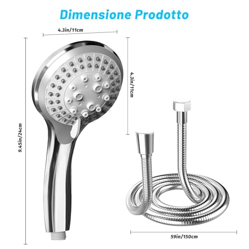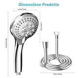 Soffione doccia alta pressione 5 getti tubo 1.5 m anti intasamento