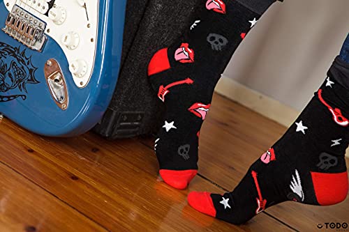 TODO COLOURS Calzini fantasia - Rock&Roll - Calze divertenti - musica, chitarra, disco, classici (35-38, Rock&Roll)