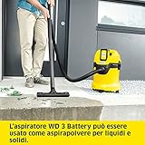 Kärcher aspiratore solidi liquidi a batteria WD 3 Battery, filtro a cartuccia, tubo di aspirazione:2m, contenitore in plastica: 17 l, funz. soffiante, utilizzabile con batteria Kärcher 36V non inclusa