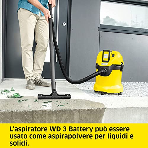 Karcher - Kärcher aspiratore solidi liquidi a batteria wd 3 Battery, filtro a cartuccia, tubo di aspirazione:2m, contenitore in plastica: 17 l, funz.