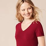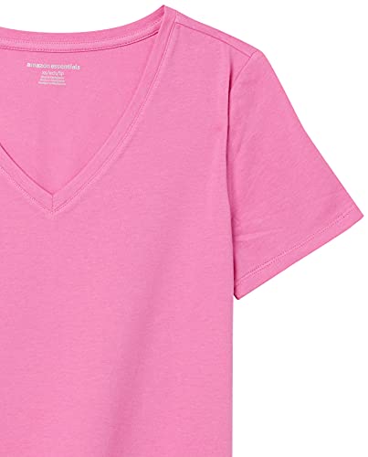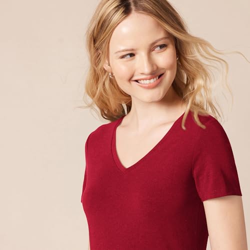 Amazon Essentials T-shirt a Maniche Corte con Vestibilità Classica (Opzioni Girocollo e Scollo a V) Donna , Pack of 2, Bordeaux/Rosa, XL