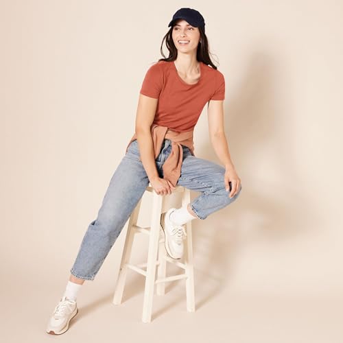 Amazon Essentials T-shirt a Maniche Corte con Vestibilità Classica (Opzioni Girocollo e Scollo a V) Donna , Pack of 2, Rosa Chiaro/Terracotta, XS