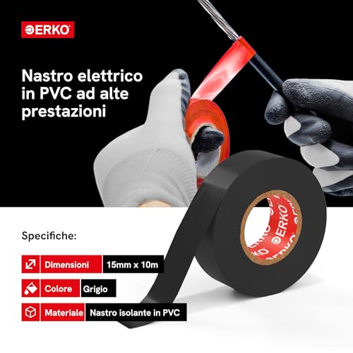 ERKO Nastro Isolante elettrico grigio 15 mm x 10 m 10 Pezzi PVC Per isolare wJvR