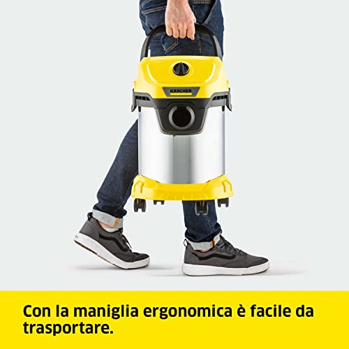 Western Digital Kaercher Wd 3 S V-17/4/20 Bidone Aspira Solidi E Liquidi 1000 W Contenitore In Acciaio 17 Lt Sacchetti Filtro In Vello Tubo 2 Mt Giallo