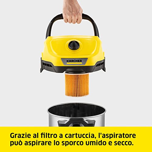 Kärcher aspiratore solidi liquidi WD 3 S V-17/4/20, funzione soffiante, 1000W, contenitore in acciaio inox 17 l, tubo 2m, filtro a cartuccia, filtro in vello, bocchette per pavimenti e fessure