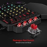 Redragon K585 DITI Tastiera da gioco meccanica RGB a una mano, tastiera da gioco professionale di tipo C con 7 tasti macro integrati, poggiapolsi staccabile, 42 tasti (Interruttore rosso), US LAYOUT
