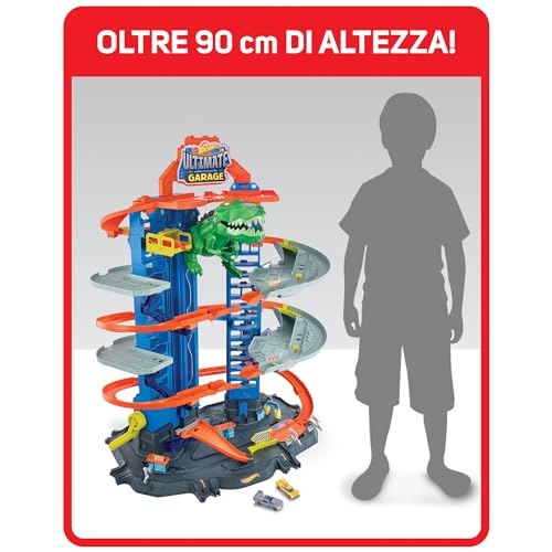 Hot Wheels City Robo T-Rex Ultimate Garage Modalità multigiocatore a più livelli per riporre auto in scala 100 plus 1 64, idea regalo per bambini dai 5 anni in su, GJL14